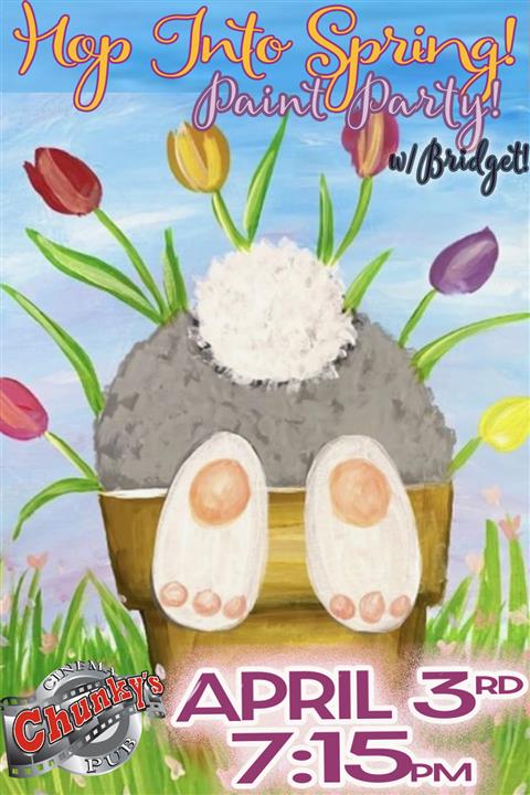 Bridget is back at Chunky's and she is utilizing our SPACIOUS lobby & bar (or theater) to guide you through a full size painting!