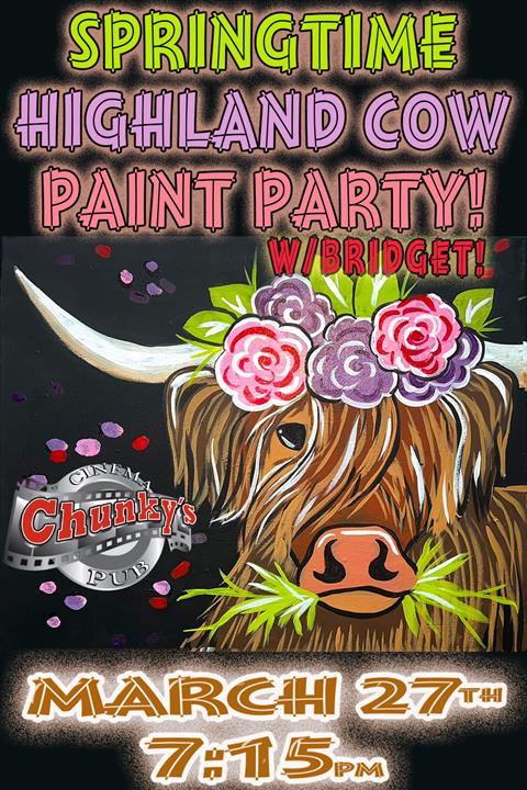 Bridget is back at Chunky's and she is utilizing our SPACIOUS lobby & bar (or theater) to guide you through a full size painting!